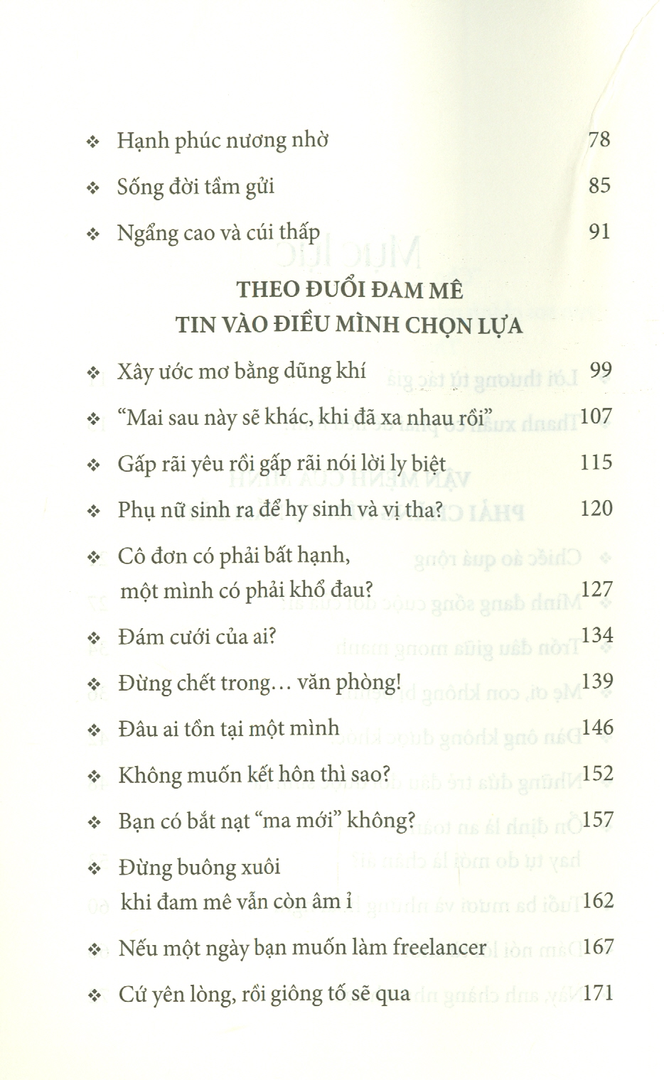 “Trang viết của Minh Mẫn khiến ta đọc từ tốn, vừa đủ để cay mắt nhìn thấy thế giới của chính mình. Để cuối mỗi phần ta có thể mỉm cười như một cái cây xanh vô tư, sống như mình ao ước, săn sóc những giản dị thương quen. Rồi dám mơ đến điều lớn lao hơn là lựa chọn sống cuộc đời hạnh phúc của riêng mình.