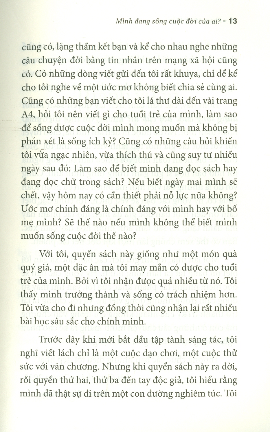 “Sẽ không ngạc nhiên nếu cuốn sách tạo nên nhiều tranh luận.Rất nhiều câu hỏi được đặt trong một cuốn sách nói về những câu chuyện ấm áp có, trần trụi có của cuộc đời. Hãy thử xem bạn trả lời thế nào nhé!”