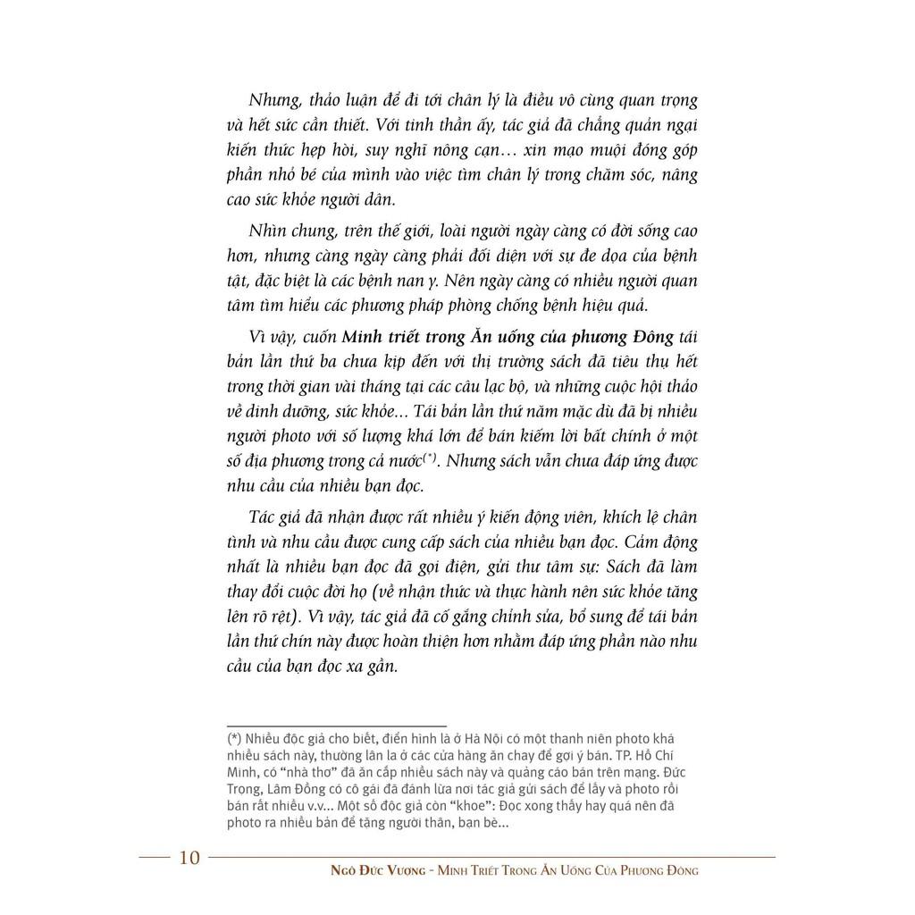 "Chọn chế độ ăn chú trọng tính cân bằng âm dương trong các thực phẩm có nguồn gốc thực vật, tác giả giải thích cặn kẽ nguồn gốc nhiều chứng bệnh mọi người mắc phải dù đã ăn thuần chay và cách để lướt qua." - Đọc sách để biết cách ăn lành (Tuổi Trẻ)