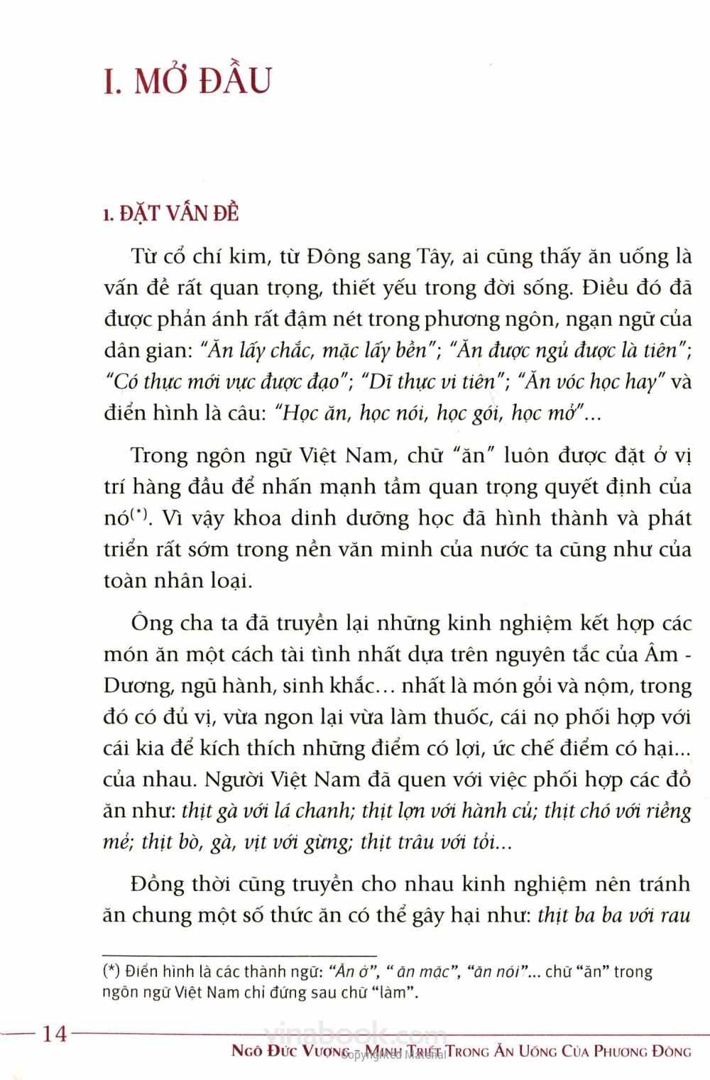 Cơ thể được xây đắp bởi đồ ăn thức uống hàng ngày, nguồn năng lượng cho chúng ta hoạt động cũng từ đó. Vì vậy, hiểu biết Minh triết trong Ăn uống của phương Đông là điều vô cùng cần thiết. Tác giả Ngô Đức Vượng từ lâu đã quan tâm tới vấn đề này. Ông đã ăn chay trường, ăn gạo lứt muối vừng, nhịn ăn chữa bệnh cho chính mình và giúp cho nhiều người thực hành tự chữa bệnh, dưỡng sinh, nâng cao sức khỏe, thu nhiều kết quả tốt đẹp từ nhiều năm nay. Với thiện chí đem lại sức khỏe và trị bệnh không dùng thuốc, ít tốn kém, dễ thực hành…cho cộng đồng, tác giả đã viết cuốn sách này, nhằm cống hiến cho bạn đọc những lời khuyên quý giá và đáp ứng những nhu cầu cần thiết cho độc giả.