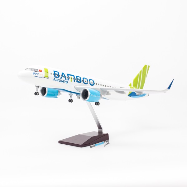 ✨Mô hình máy bay Bamboo Airways Airbus A320 lắp ráp có đèn 47cm MBMH46