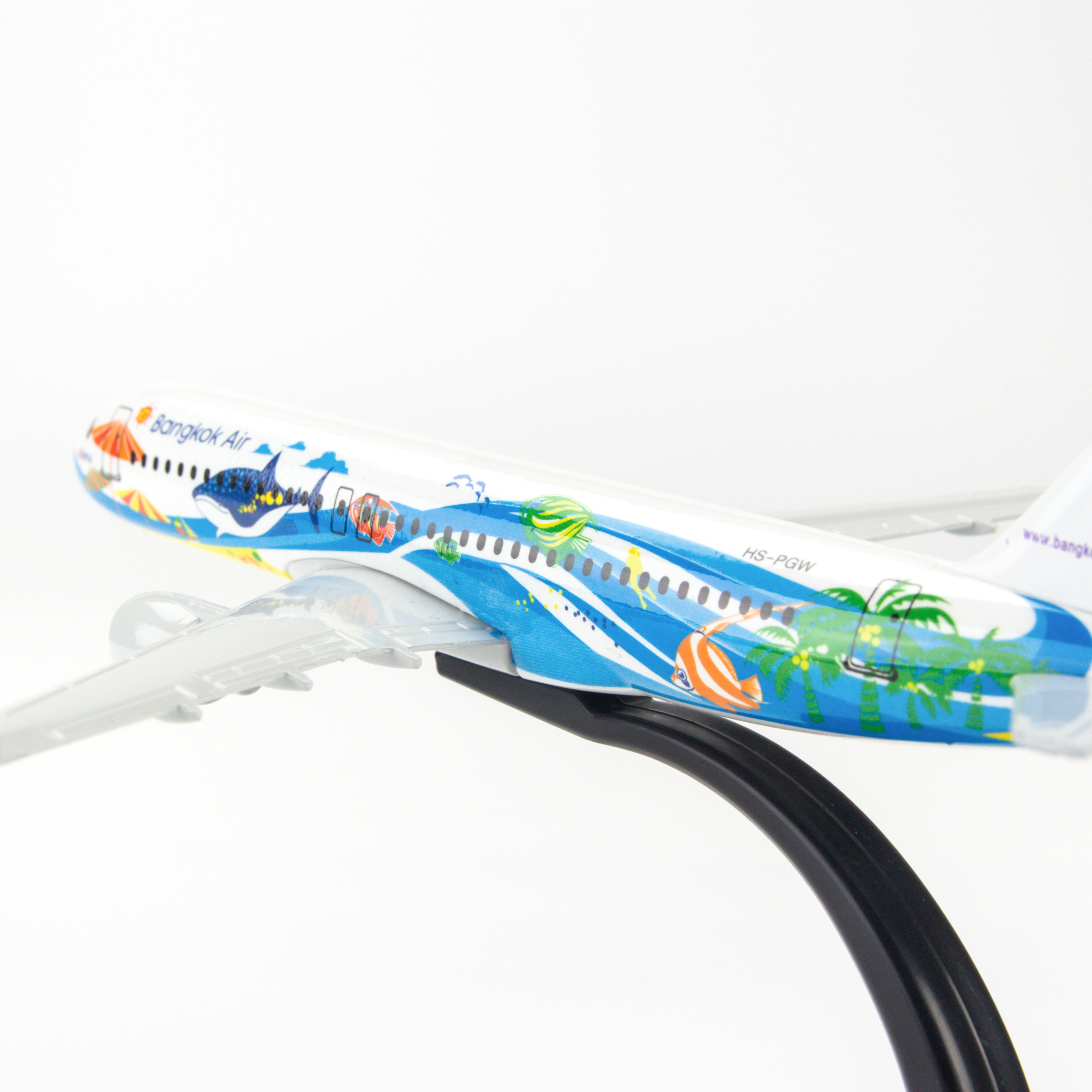Mô hình máy bay Bangkok Airways với thiết kế mô phỏng theo máy bay thật, sản phẩm được phủ lên một lớp sơn bóng, các chi tiết được mô phỏng tương đối đầy đủ từ cánh quạt đến các ô cửa của máy bay. Chất liệu mô hình hoàn toàn bằng kim loại với một số chi tiết bằng nhựa cứng.