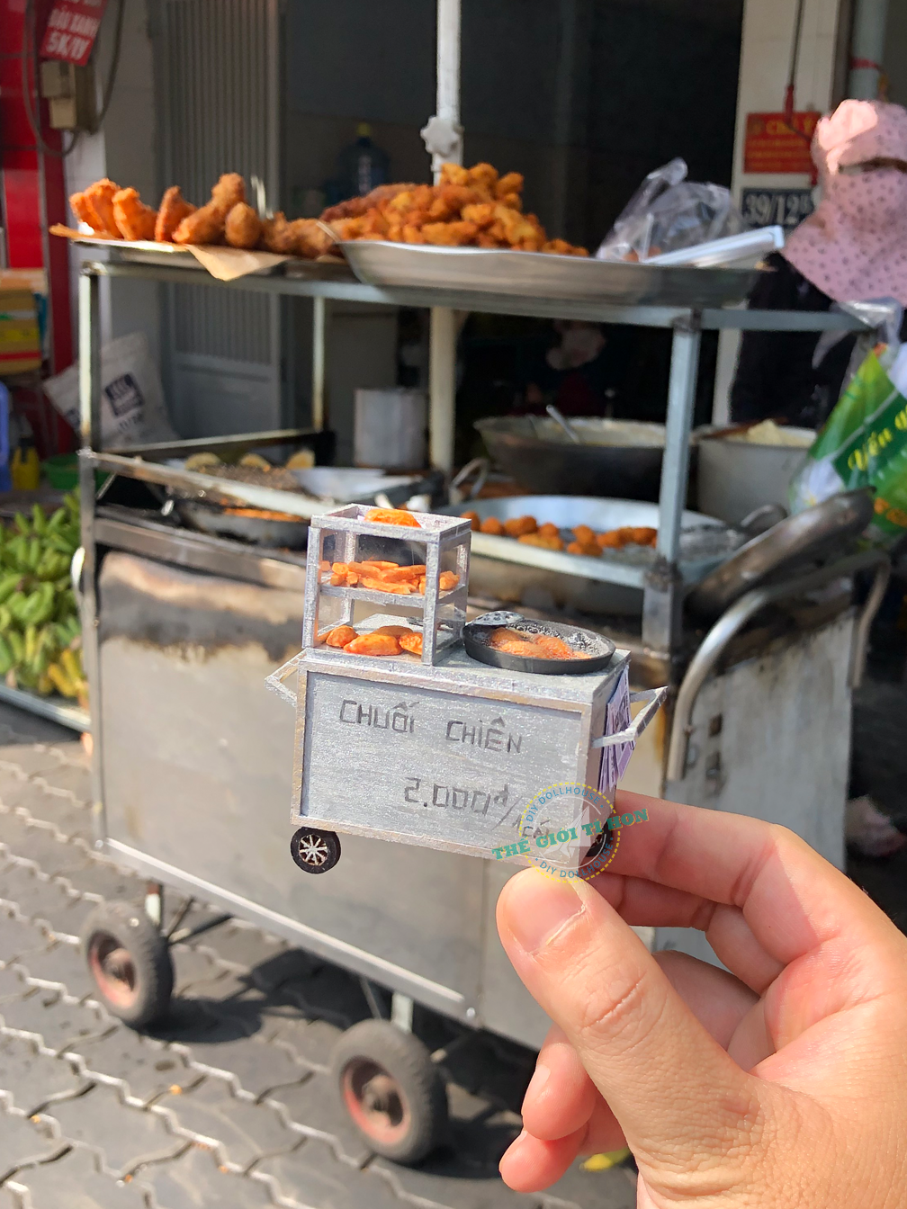 - SẢN PHẨM KHÔNG ÁP DỤNG ĐỔI TÊN BẢNG HIỆU GIÁ SẢN PHẨM CHƯA BAO GỒM THUẾ VAT, KHÁCH CẦN XUẤT VAT XIN VUI LÒNG LIÊN HỆ THẾ GIỚI TÍ HON QUA CHATBOX Giới thiệu Mô Hình Sài Gòn Xưa Và Nay Thu Nhỏ - Xe Chuối Chiên - HR06 ** ĐƠN HÀNG XE HÀNG RONG KHÔNG ÁP DỤNG FREESHIP Ở Sài Gòn, không khó để bạn tìm một xe bán bánh chuối chiên tại các chợ, cổng trường, ngã tư... Vỏ bánh vàng vàng, giòn rụm, kết hợp với sự ngọt lịm của nhân chuối bên trong. Chỉ đơn giản như vậy nhưng những chiếc xe bán chuối chiên, khoai lang chiên nho nhỏ luôn nườm nượp kẻ đến người đi, ăn hết ngày này qua ngày khác vẫn không hết thòm thèm... Mô hình Xe Hàng Rong Sài Gòn Xe Chuối Chiên Thu Nhỏ - HR01 Tìm Hiểu Mô Hình Tí Hon Thông số mô hình
