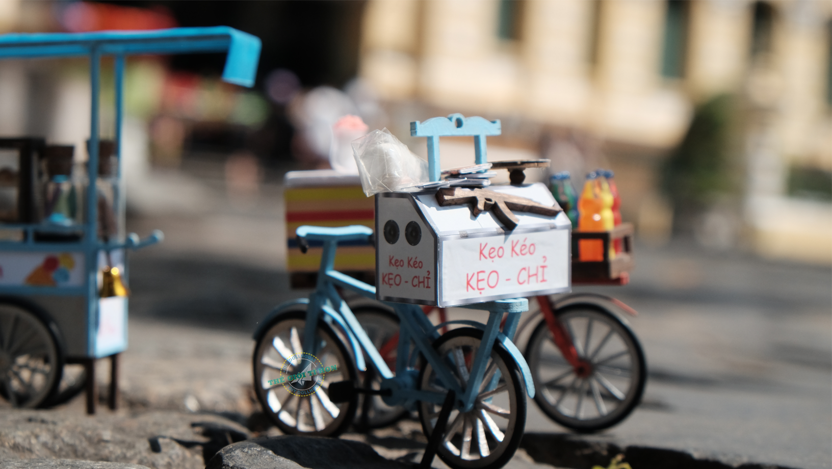 Khách lưu ý: Sản phẩm chưa lắp ráp, chưa bao gồm keo+ dụng cụ+ tượng, không áp dụng đổi tên bảng hiệu   Mô Hình Xe Hàng Rong Sài Gòn Thu Nhỏ - Xe Bánh