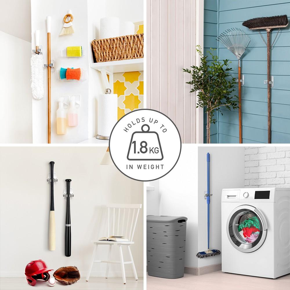 Giá Móc Treo Kẹp Cán Chổi, Cây Lau Nhà Gắn Tường, Sử Dụng Miếng Dán Siêu Chắc, TakyHome, Sản Phẩm Tiện Dụng Gia Đình. - Móc treo chổi có thể sử dụng trên nhiều bề