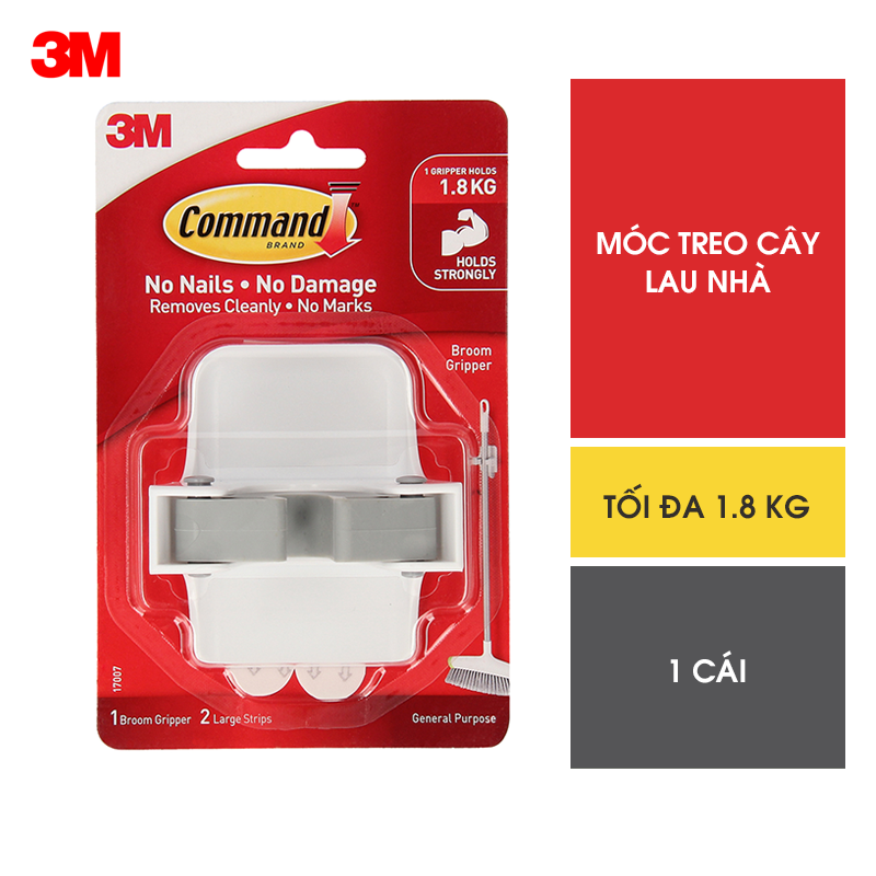 ✨Móc dán tường treo chổi, cây lau nhà Command 3M chịu lực 1.8kg - Dễ sử dụng, độ bền cao, bám cực chắc, tháo cực dễ 17007