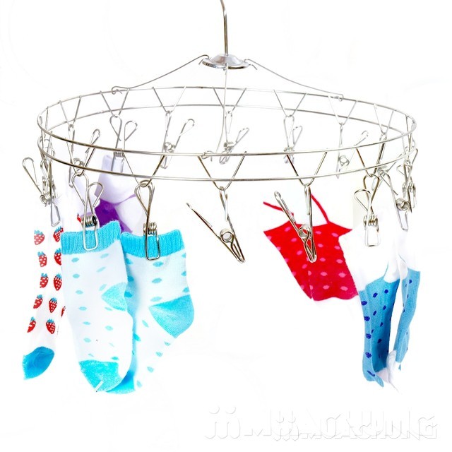 Móc treo inox phơi quần áo em bé, khăn tay, tất vớ, đồ lót với nhiều kẹp #moctreoquanao #mocchumtre