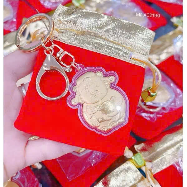 Bộ sản phẩm bao gồm: 1 túi nhung đỏ, 1 móc khóa thần tài
