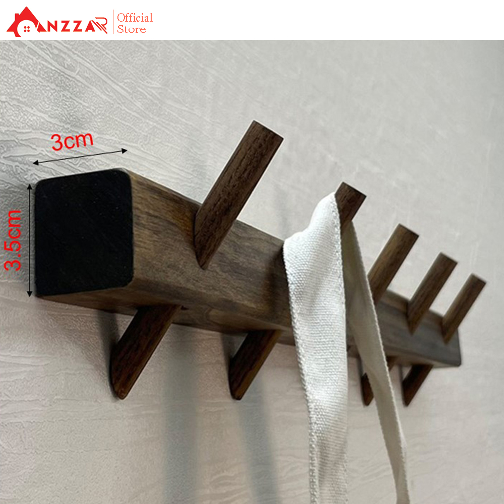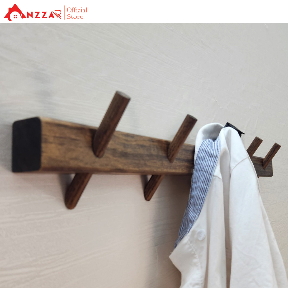 ✨Móc Treo Quần Áo Gắn Tường Màu Nâu Rustic- Móc Gỗ Treo Quần Áo Anzzar - Móc Treo Tường Gỗ Tự Nhiên-M01