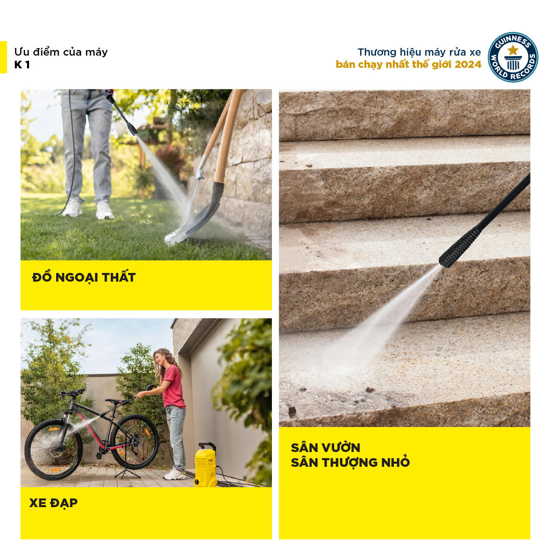 - Karcher mang đến giải pháp làm sạch toàn diện từ vệ sinh sân vườn, vệ sinh nhà cửa cho đến xe, các dụng cụ, vệ sinh bể bơi, toilet...