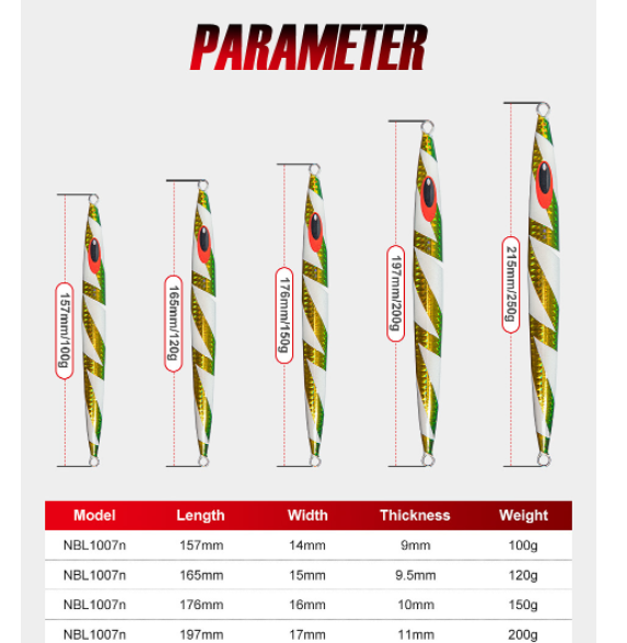 Mồi Metal Jig với dòng sản phẩm NBL 1007N được thiết kế độc đáo phù hợp cho cả hai hình thức slow jigging và fast jigging.