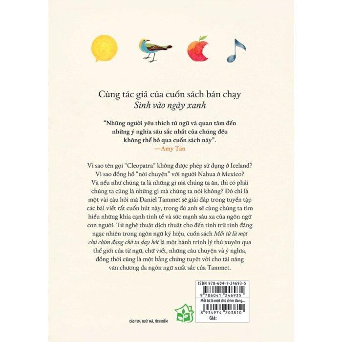 Vì sao tên gọi “Cleopatra” không được phép sử dụng ở Iceland? Vì sao đồng hồ “nói chuyện” với người Nahua ở Mexico? Và nếu như chúng ta là những gì mà chúng ta ăn, thì có phải chúng ta cũng là những gì mà chúng ta nói không? Đó chỉ là một vài câu hỏi mà Daniel Tammet sẽ giải đáp trong tuyển tập các bài viết rất cuốn hút này, trong đó anh sẽ cùng chúng ta tìm hiểu những khía cạnh tinh tế và sức mạnh vô cùng của ngôn ngữ con người. Từ nghệ thuật dịch cho đến tính trữ tình đáng ngạc nhiên trong ngôn ngữ ký hiệu, cuốn sách Mỗi từ là một chú chim đang chờ ta dạy hót là một hành trình lý thú xuyên qua thế giới của từ ngữ, chữ viết, những câu chuyện và ý nghĩa, đồng thời cũng là một bằng chứng tuyệt vời cho tài năng văn chương và đa ngôn ngữ xuất sắc của Tammet.