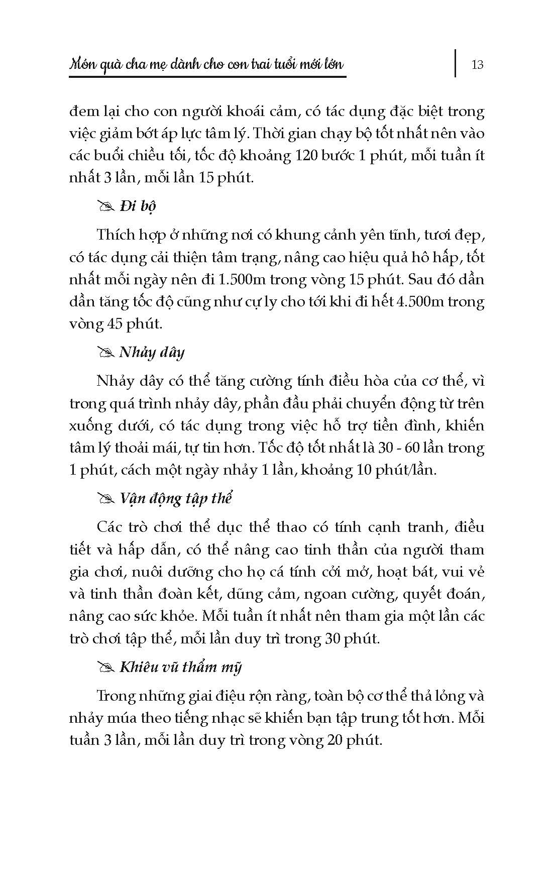 "Món quà cha mẹ dành cho con trai tuổi mới lớn" là cuốn sách không thể thiếu cho hành trình trưởng thành của các bạn trai. Cuốn sách cung cấp những kiến thức khoa học, dễ hiểu và thiết thực về các vấn đề mà các bạn trai thường gặp phải như: sức khỏe sinh lý, tâm lý, giới tính, kết bạn, giao tiếp… của các bạn trai tuổi dậy thì; giúp các cậu trai trẻ vượt qua những biến đổi tâm lý và sinh lí trong thời kỳ dậy thì.