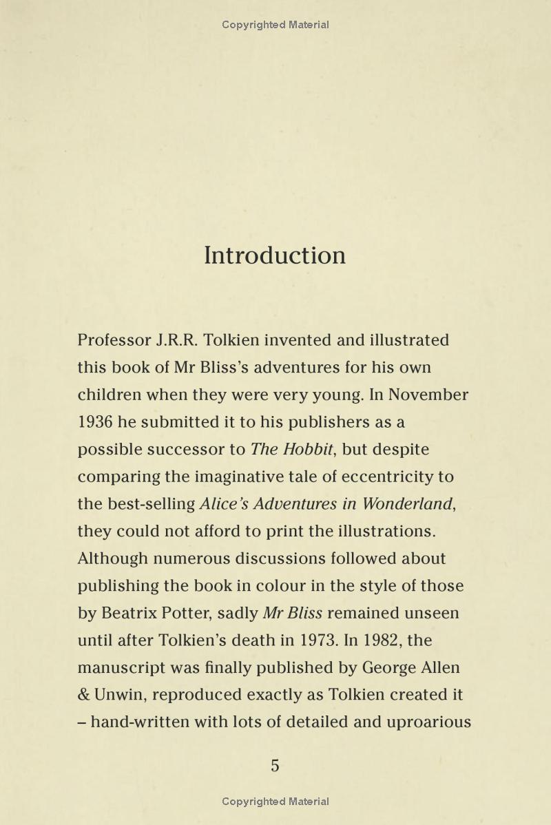 Professor J.R.R. Tolkien invented and illustrated the book of Mr Bliss's adventures for his own children when they were very young. The book was handwritten with lots of detailed and uproarious colour pictures.