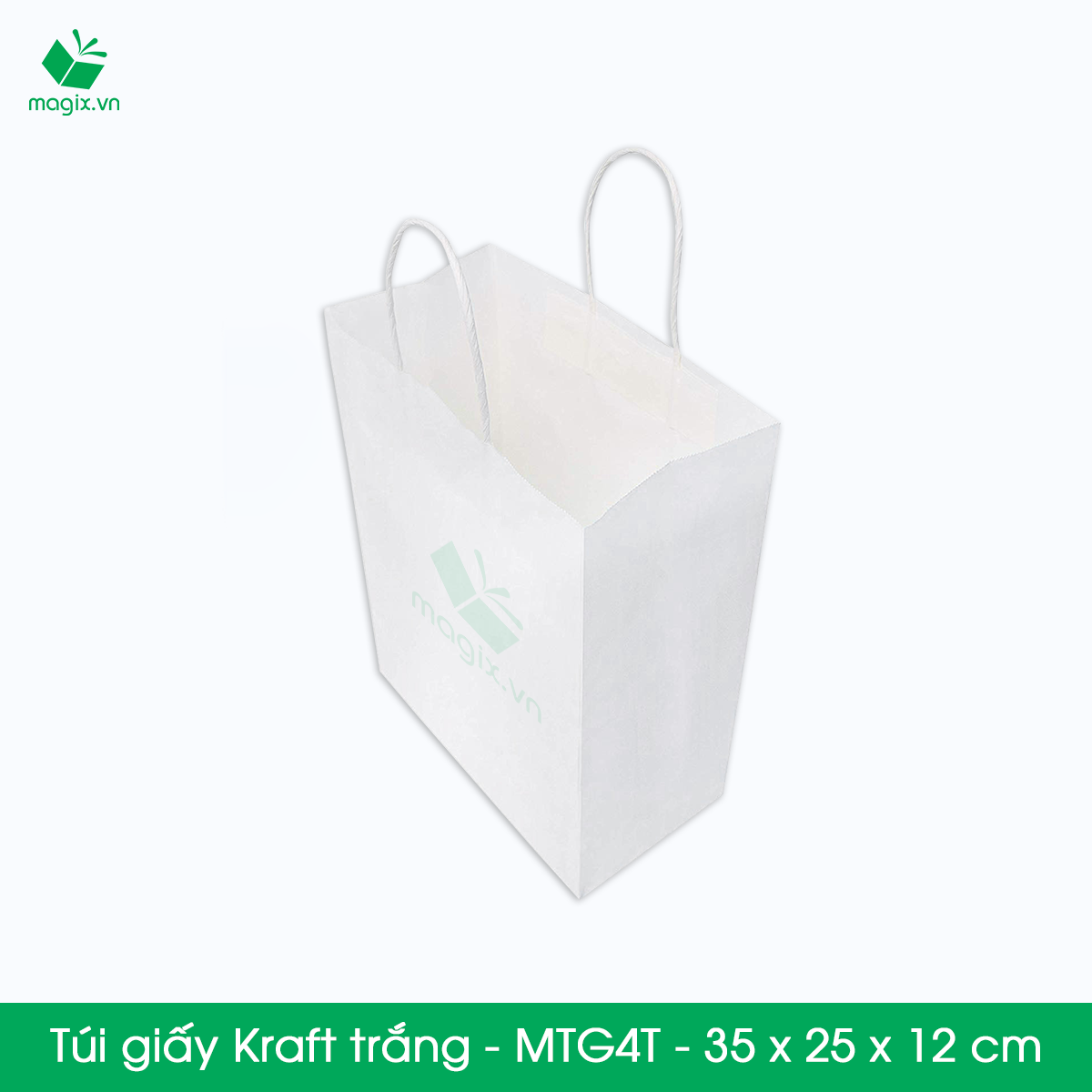 Túi Giấy Kraft Trắng Sản phẩm được làm bằng giấy kraft trắng, bền về cơ học, dai, chống thấm tốt, thân thiện môi trường do có khả năng phân hủy sinh học nên được tái sinh