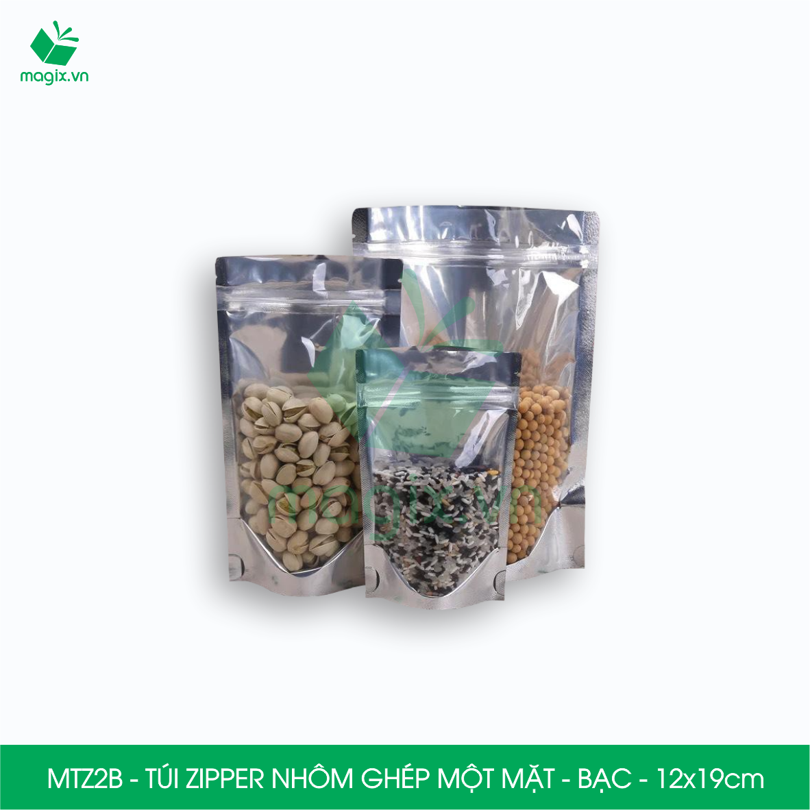 ✨MTZ2B - 12x19cm - Combo 50 Túi Zipper Bạc đáy đứng, một mặt trong