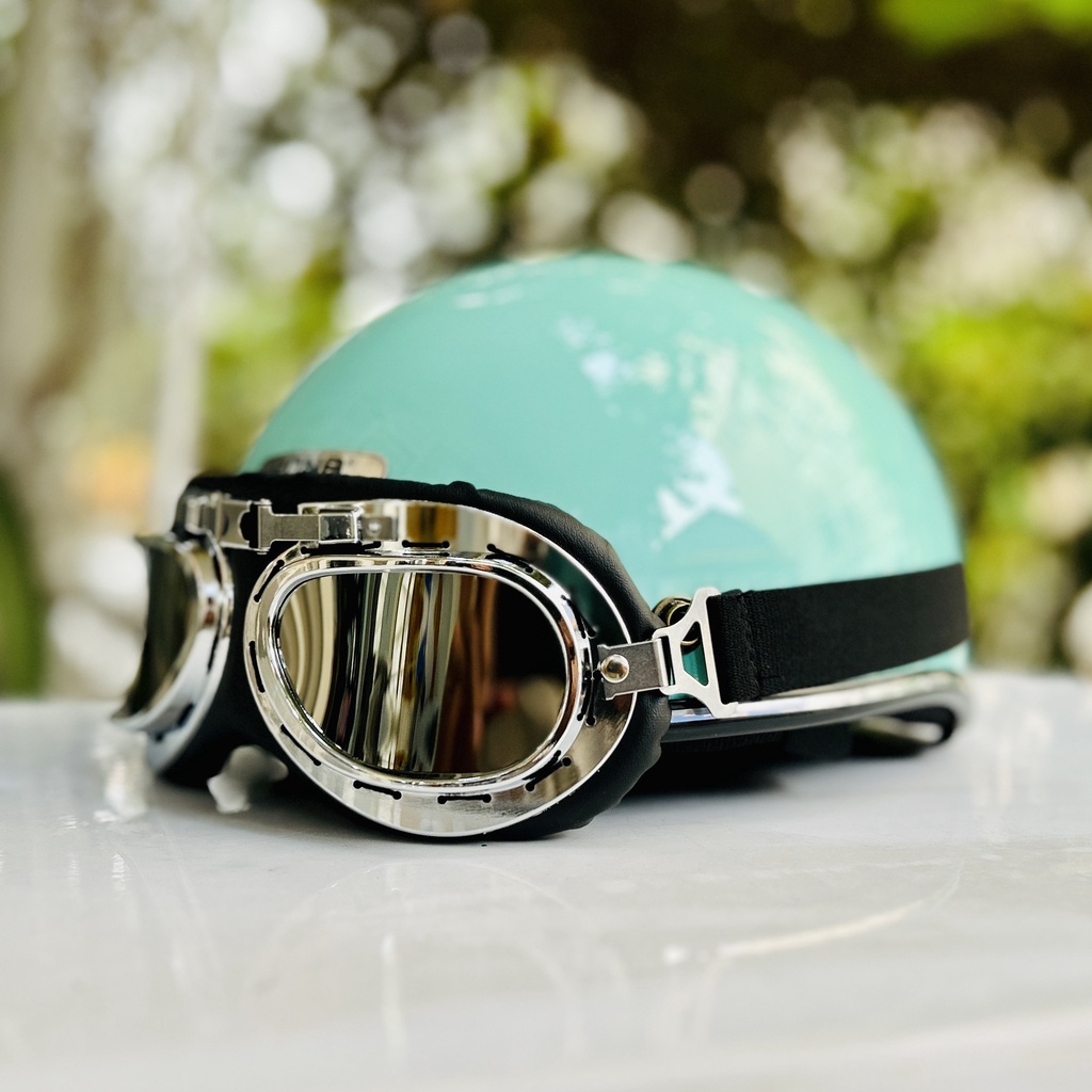 Mũ bảo hiểm nửa đầu Rona haly viền bạc kèm kính phi công bạc cho nam và nữ đi xe máy
