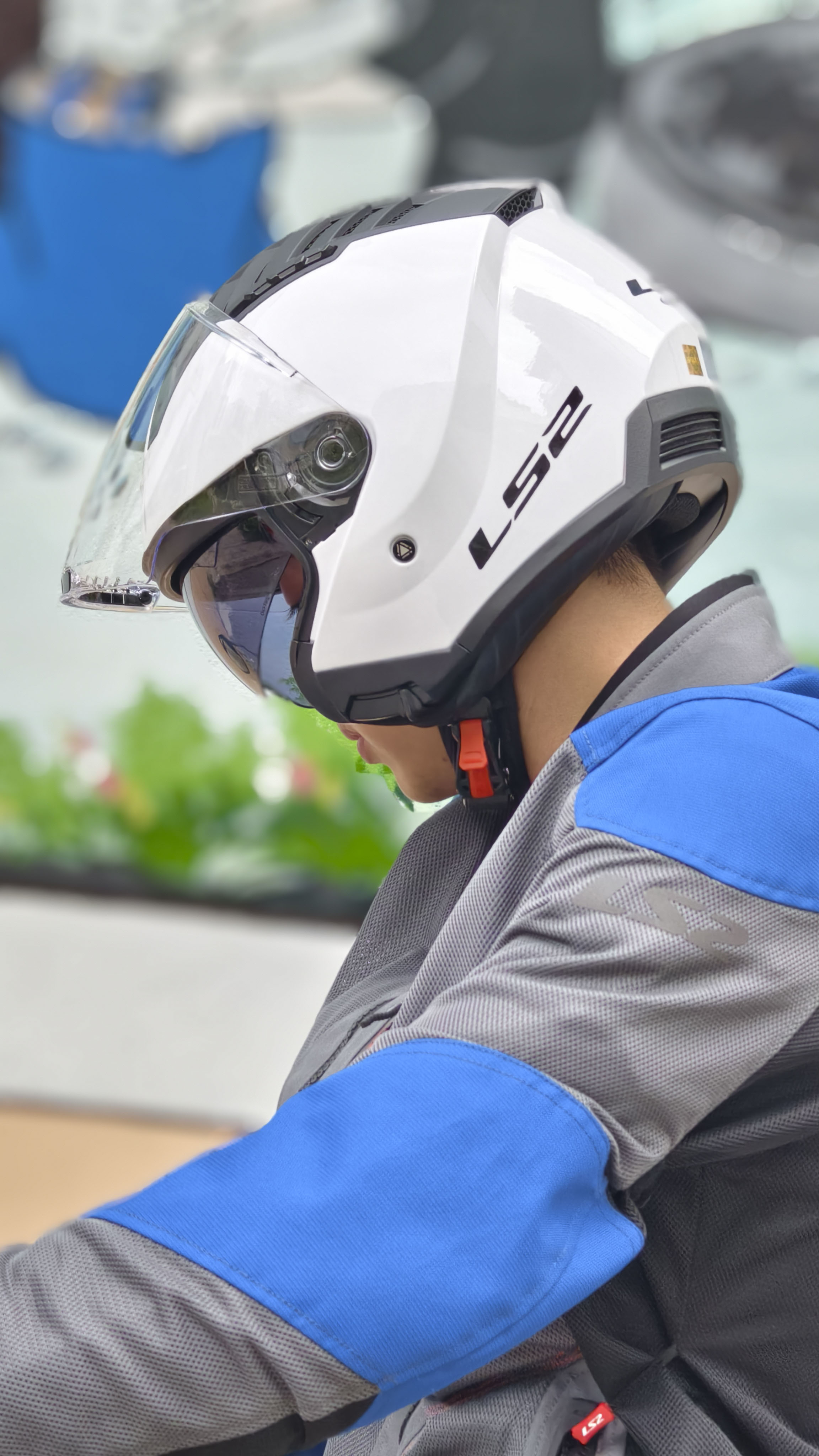 Mũ LS2 OF600 II có khả năng nâng cấp lên 2 kính, kính phụ màu tối bên trong giúp tiện lợi khi di chuyển trong điều kiện dư sáng, chói nắng ban ngày. Thao tác đóng mở kính phụ cũng cực kì dễ dàng, nhanh chóng với nút gạt nhỏ như mũ fullface, rất thuận tiện cho người đội