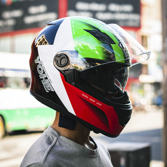 Mũ bảo hiểm Fullface Yohe 970 Hai Lớp Kính có thiết kế năng động, hiện đại, tương đối nhỏ gọn. Đặc biệt màu sắc của mũ bảo hiểm 2 lớp kính fullface Yohe 970 đa dạng, cách phối màu sơn mạnh mẽ, đầy cá tính vừa đảm bảo an toàn vừa mang lại vẻ ngoài chất lừ cho người đội.