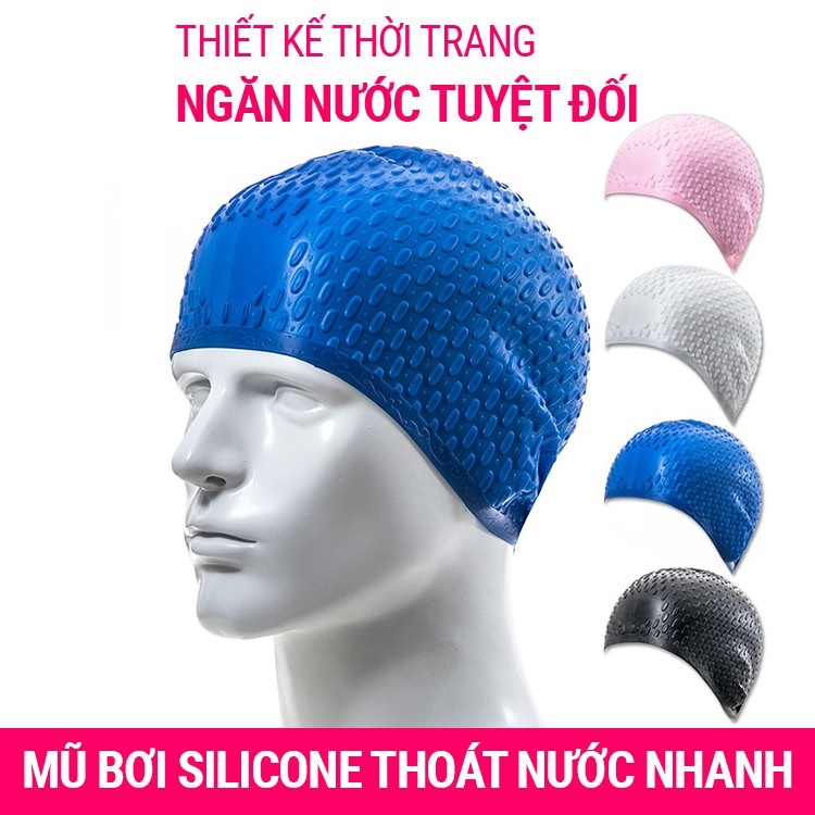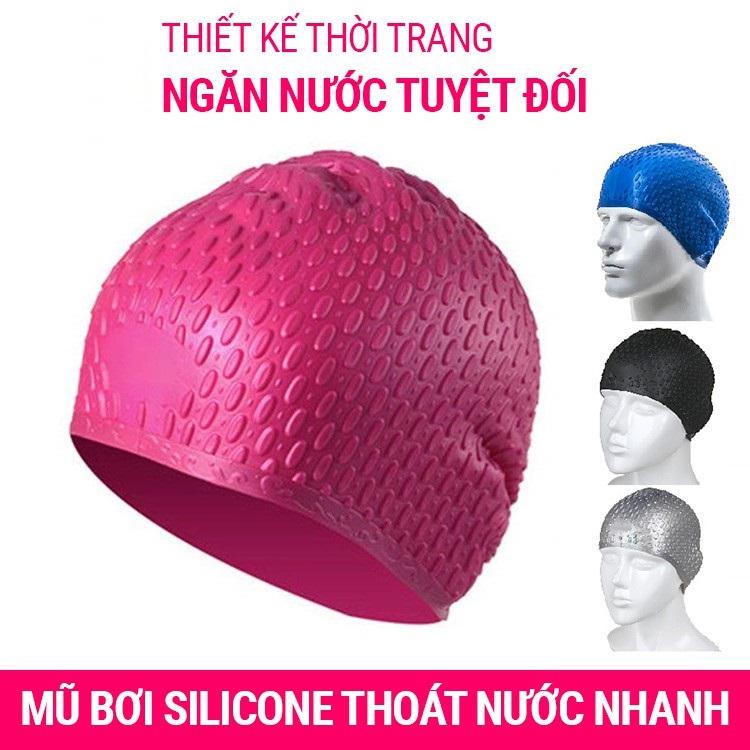 Mũ bơi người lớn làm từ silicone chống thấm nước – giúp tóc bạn luôn khô ráo.