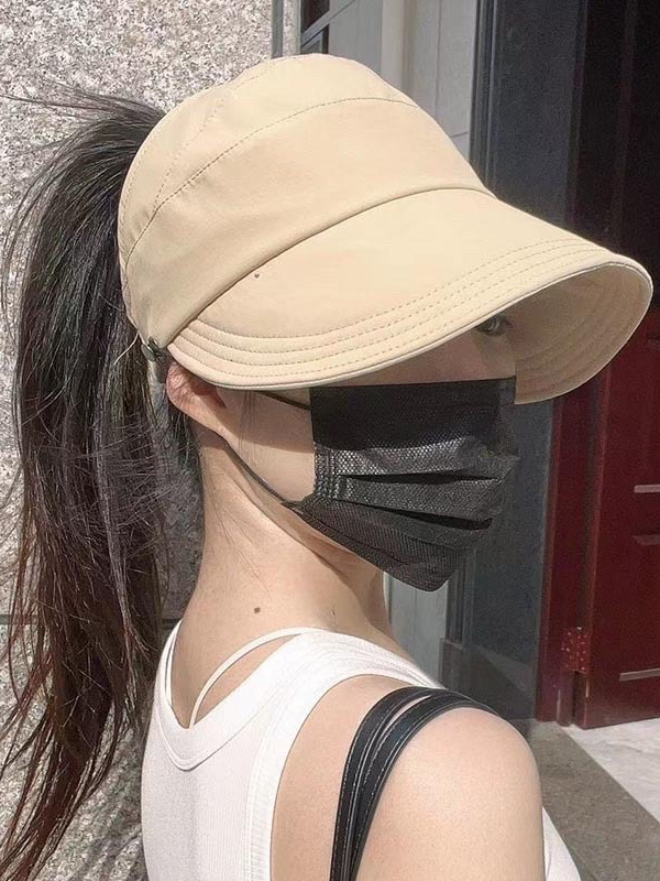 -Mũ chống nắng nửa đầu Hàn Quốc, nón vành rộng có nút đeo khẩu trang, mũ chống nắng buộc tóc đuôi ngựa -Xuất xứ : Trung Quốc --Chất liệu : Vải Acrylic