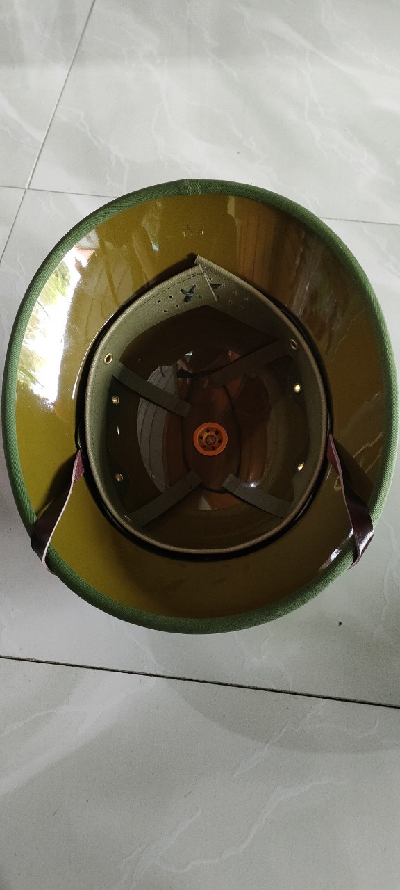 Mũ cối chuẩn 1966 Chịu lực chịu va đập cực tốt chống nước chống phai màu Lòng vàng Bọc Vải chuẩn đẹp Lỗ thông hơi,khuy làm bằng nhôm quai làm bằng da bò Cách điện,