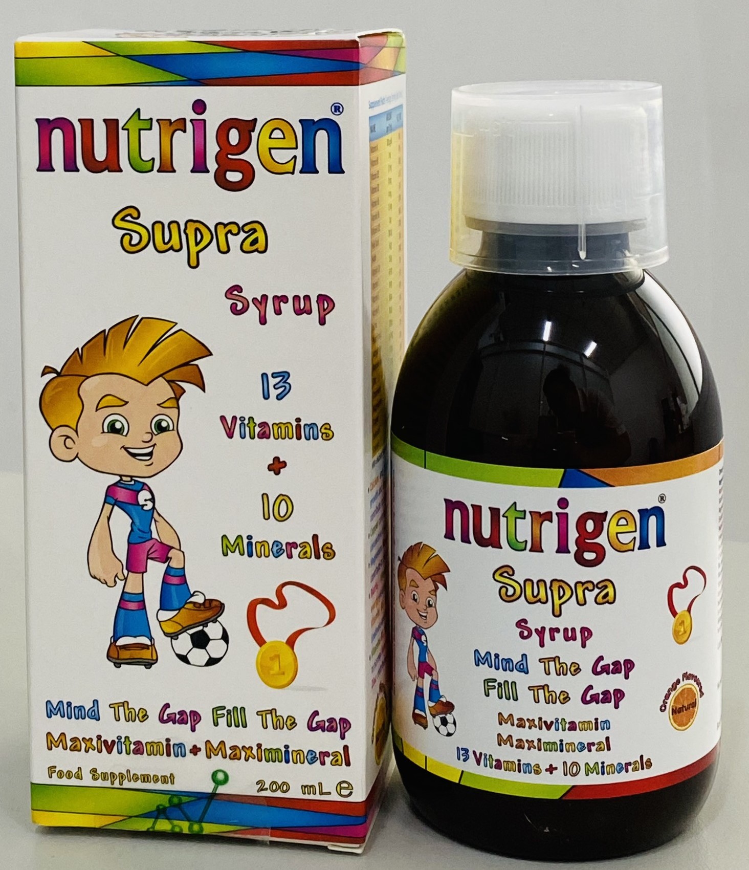 Công thức độc nhất của Nutrigen Supra Maxivitamin Maximineral Syrup cung cấp đến 13 vitamin và 10 khoáng chất thiết yếu giúp tăng cường sự phát triển, giúp trẻ lớn khỏe mạnh và hỗ trợ các chức năng của cơ thể.