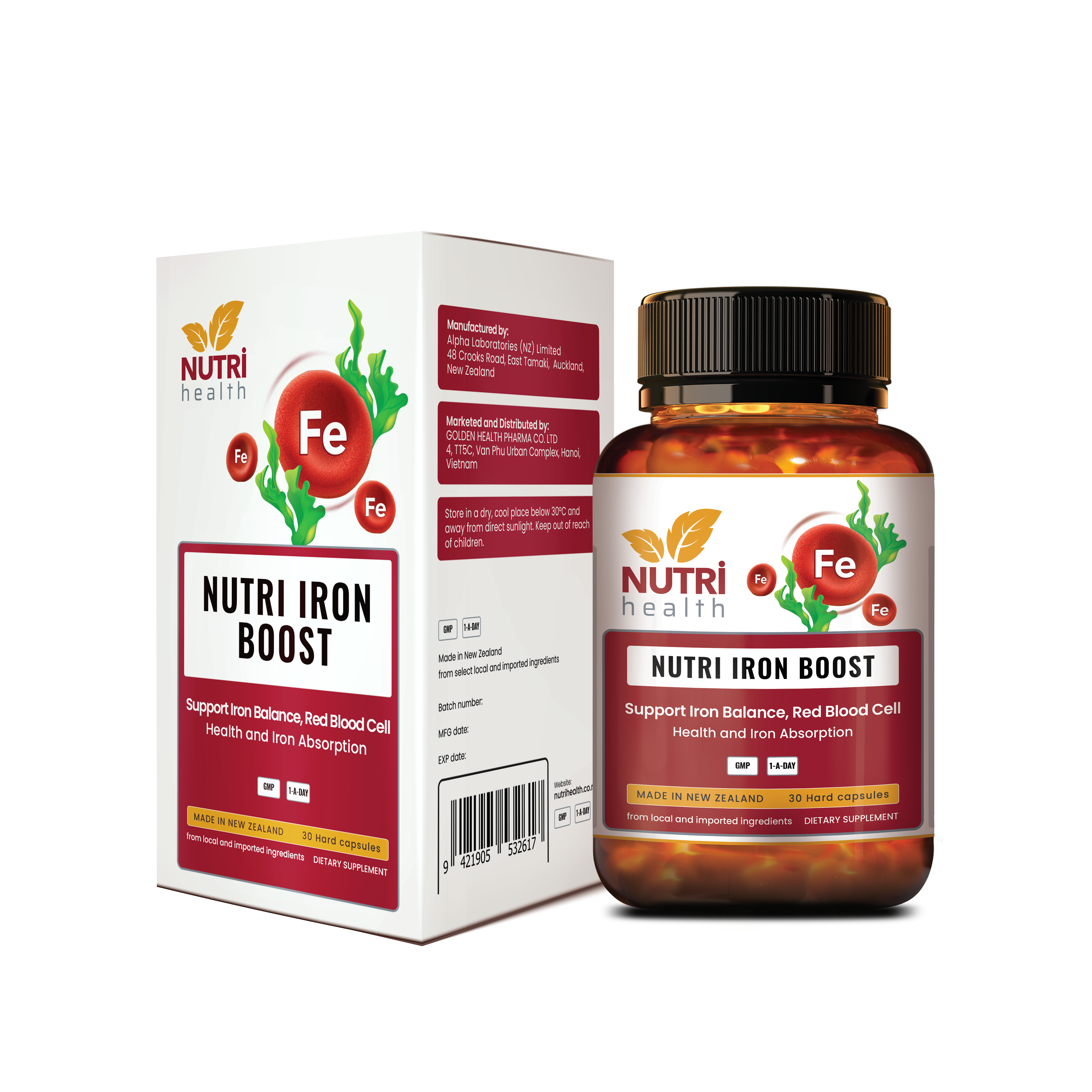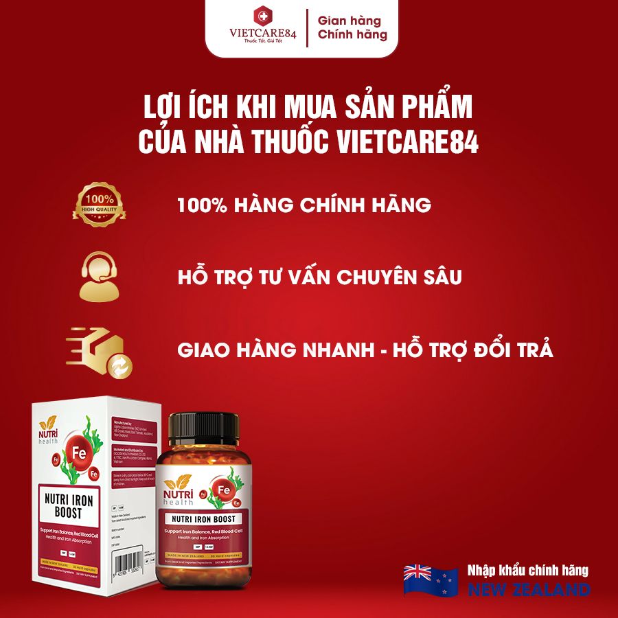 Mua tại TiktokVIÊN SẮT HỮU CƠ NUTRI IRON BOOST (30 VIÊN) Thực phẩm bảo vệ sức khỏe SẮT HỮU CƠ NUTRI IRON BOOST Bổ sung sắt bisglycinate chelate và acid folic cho cơ thể Sản xuất tại New Zealand GIẤY ĐKSP CỦA BỘ Y TẾ: 3523/2023/ĐKSP NUTRI IRON BOOST là sắt hữu cơ thiên nhiên, kết hợp Vitamin C, Acid Filic và Vitamin B12 giúp tạo máu, tăng cường hấp thu sắt vào cơ thể, tạo kháng thể, phòng ngừa thiếu máu đặc biệt là phụ nữ mang thai. VIÊN SẮT HỮU CƠ NUTRI IRON BOOST CÓ GÌ ĐẶC BIỆT: