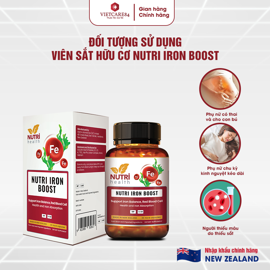✨[Mua 2 Tặng 1] Viên Sắt Hữu Cơ New Zealand Nutri Iron Boost 30 Viên | Giúp Bổ Sung Sắt, Acid Folic Cho Cơ Thể - Nhập Khẩu Chính Hãng