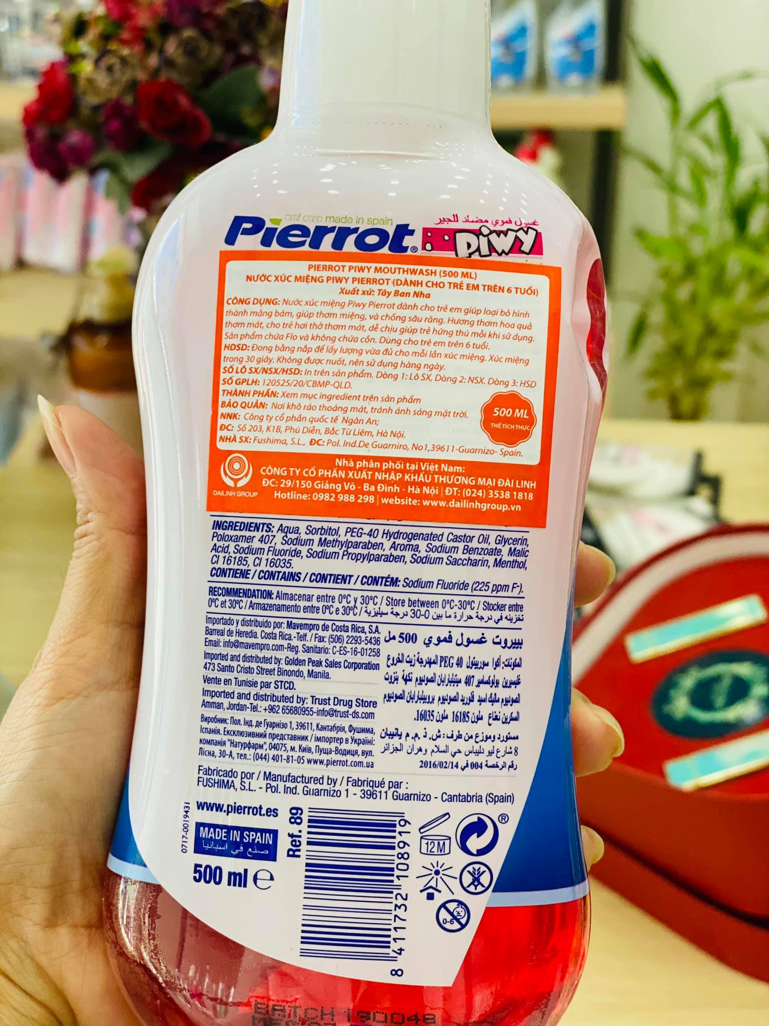 Nước súc miệng Pierrot là sản phẩm chăm sóc răng miệng với các tác dụng như sát khuẩn, sạch họng, làm sạch mảng bám, giúp hơi thở thơm mát, đặc biệt chống sâu răng. Pierrot