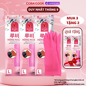 [Mua 3 Tặng 2] Bộ 3 Đôi Găng Tay Cao Su Tự Nhiên Ruby Hàn Quốc Size L-39cm Xuất xứ thương hiệu: Hàn Quốc Sản xuất tại: Việt Nam Size L: +/- 39cm -