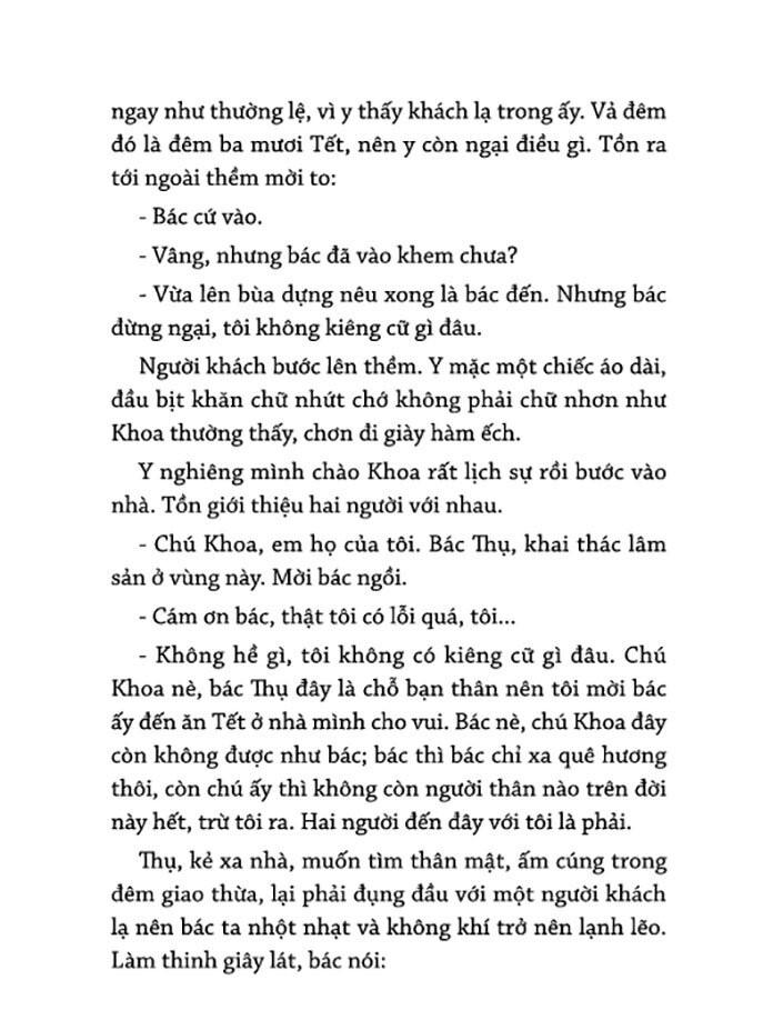 Hay truyện "Quyển gia phổ", trong cái lung linh của ngôn từ tinh lọc, hàm súc và nhiều tầng nghĩa, tác giả đưa người đọc dõi theo một nhóm bạn cùng đàm đạo chuyện nhân tình thế thái trong một đêm cuối năm: Những khác biệt trong quan niệm tồn giữ các giá trị xưa cũ, hay sự mâu thuẫn giữa nỗi mặc cảm và niềm kiêu hãnh đã được đẩy lên cao trào khi ngọn lửa ngùn ngụt bốc cháy trên ban thờ tổ tiên trong sự tuyệt vọng bất lực của gia chủ - quyển gia phổ, bảo vật của gia đình đã trở thành đống tro tàn.