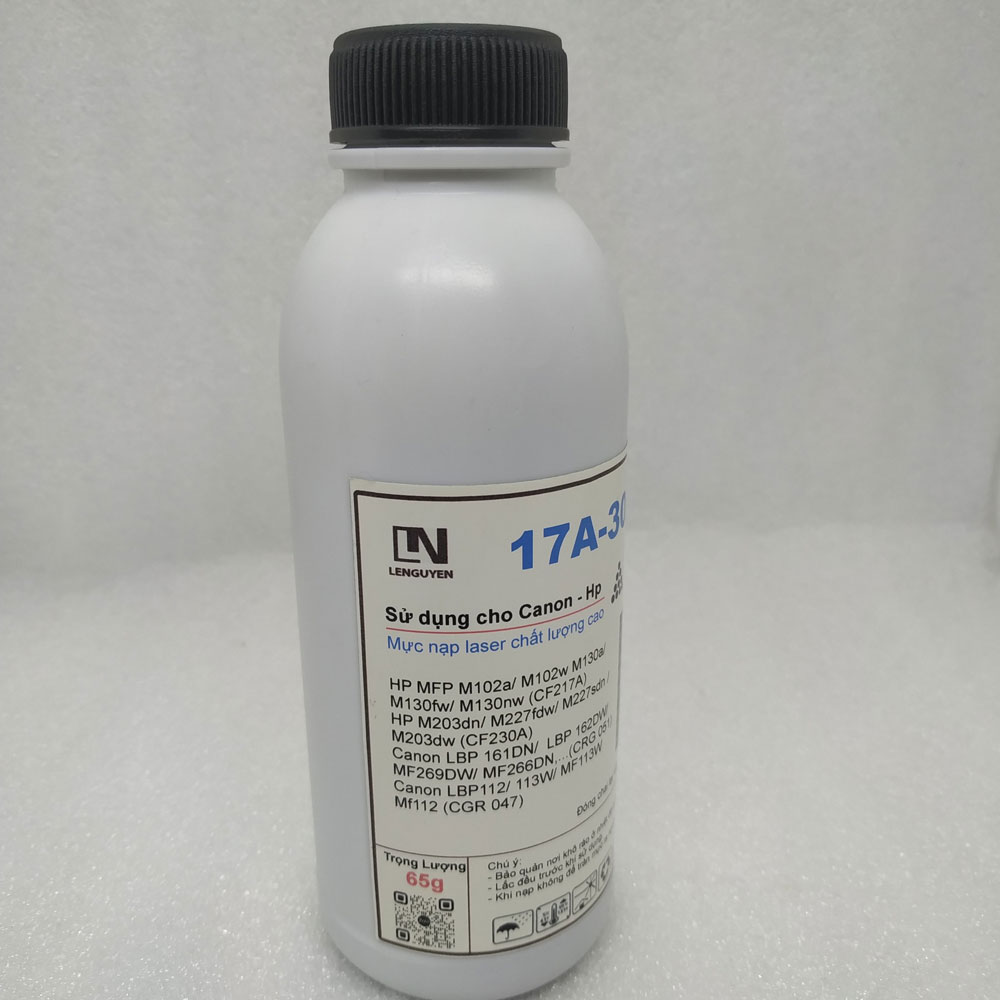 Mực nạp LN 17A 30A 105g (Gồm 65g mực và 40g chai nhựa) Loại mực: laser trắng đen (Mực bột)