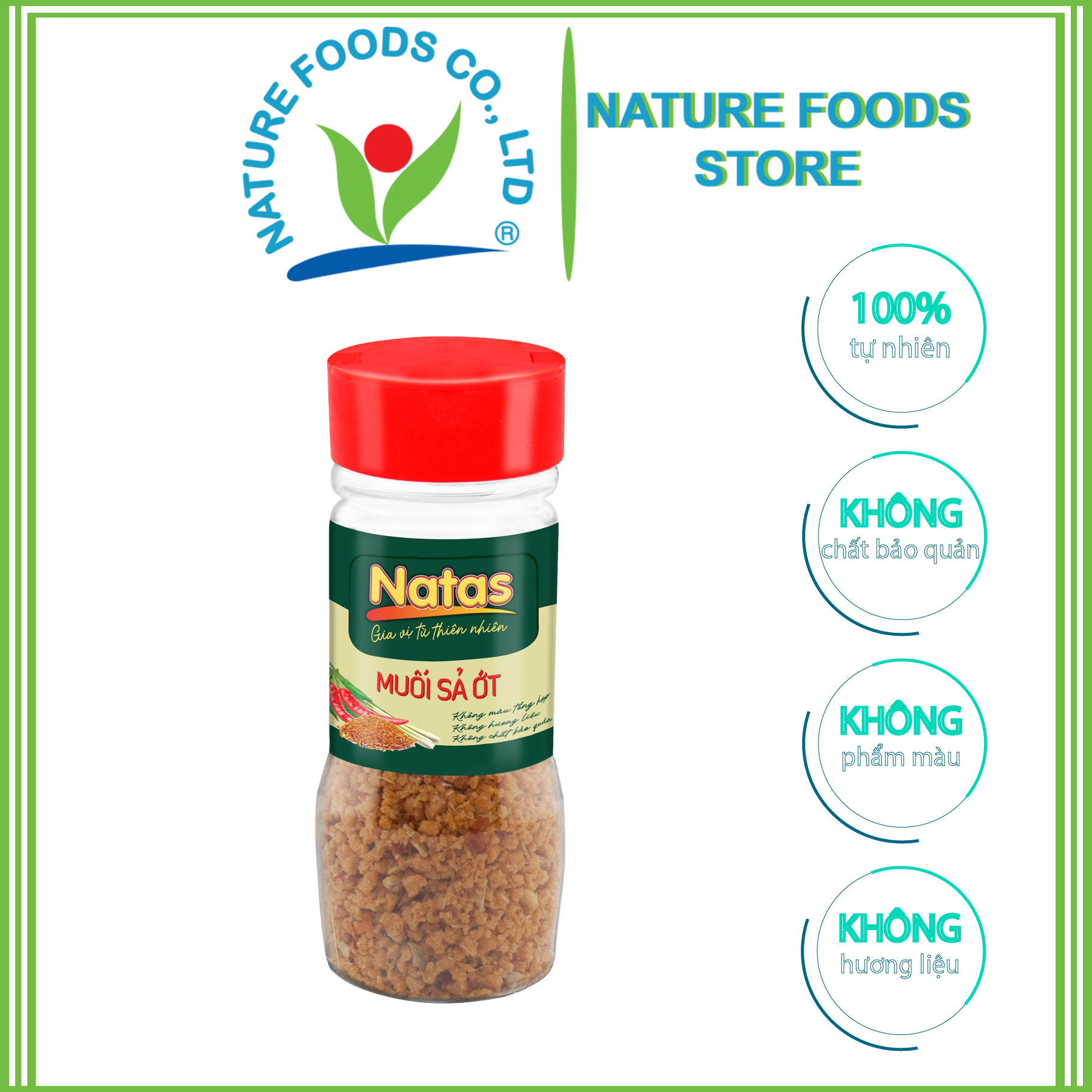 - Muối sả ớt Natas được sản xuất trên quy trình hiện đại kết hợp với công thức được nghiên cứu kỹ lưỡng, đạt tiêu chuẩn chất lượng vệ sinh an toàn thực phẩm. -