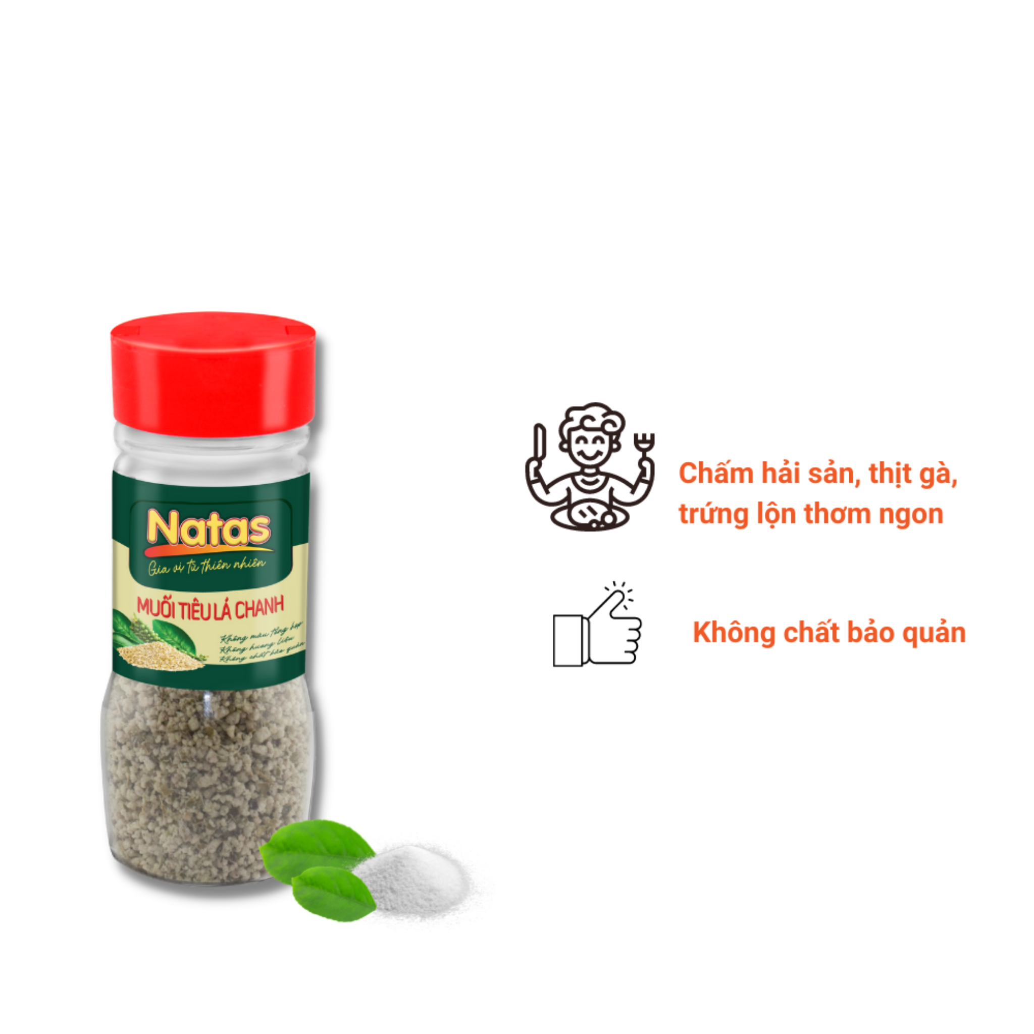 - Muối tiêu lá chanh Natas được sử dụng dùng để chấm các món hải sản, thịt gà và các món luộc, hấp.. giúp bạn tiết kiệm thời gian.