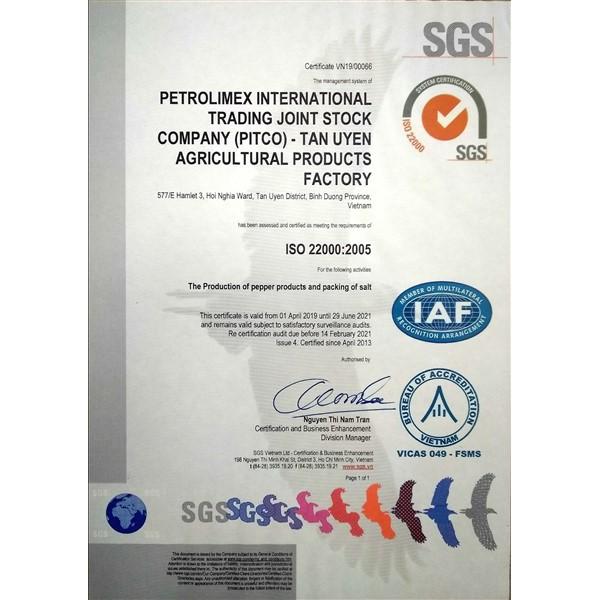 Sản phẩm được chứng nhận đạt chất lượng vệ sinh an toàn thực phẩm: HACCP, GMP, ISO 22000:2005