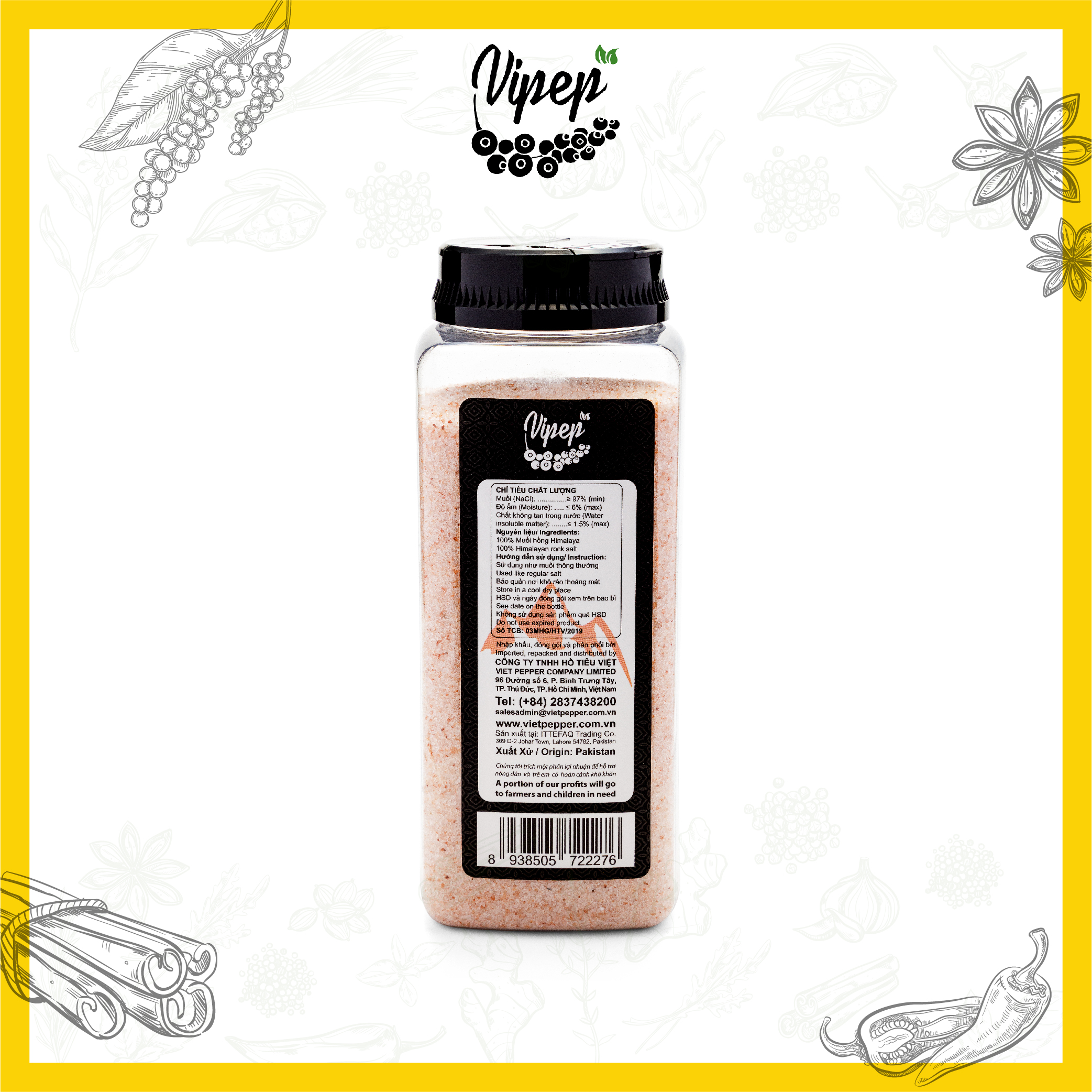 Tên sản phẩm: Muối Hồng Himalaya Xay Nhuyễn Vipep Hũ Nhựa 1.1kg - Gia vị Vipep