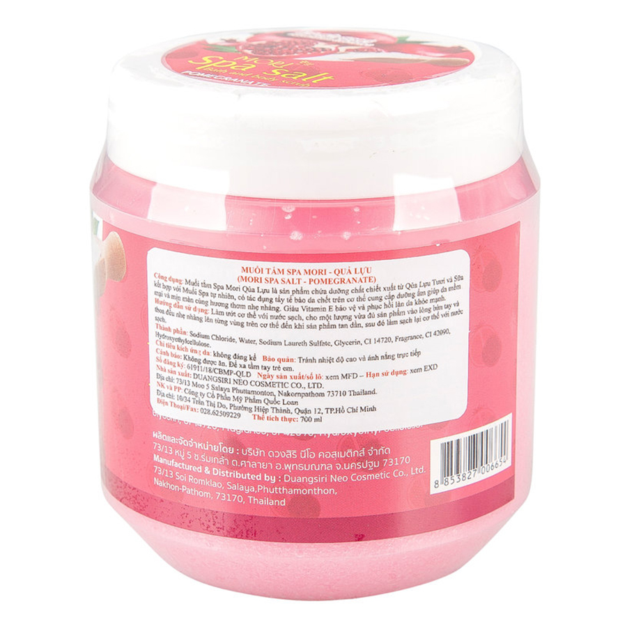 Mua tại Tiktok- Muối Tắm Spa Mori Quả Lựu Mori Spa Salt - Pomegranate (700ml) là sản phẩm chứa dưỡng chất chiết xuất từ quả lượu tươi và sữa kết hợp với muối spa tự nhiên, có tác dụng tẩy tế bào da chết trên cơ thể cung cấp dưỡng ẩm giúp da mềm mại và mịn màn cùng hương thơm nhẹ nhàng.