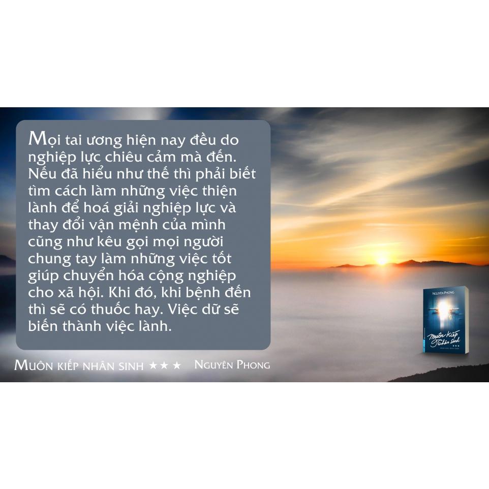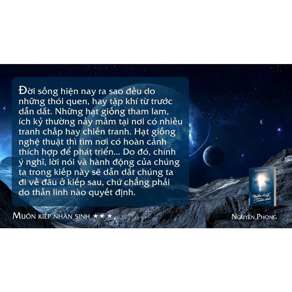 Thông qua 10 chương sách đan xen giữa quá khứ và hiện tại, giữa kể chuyện và lý luận, giữa hiện thực và huyền ảo, cuốn sách gợi ra những suy tư về vị thế và vai trò của con người nhỏ bé giữa vũ trụ bao la. Sau cùng, bảo toàn và phát huy tinh thần của hai tập trước, “Muôn Kiếp Nhân Sinh – tập 3” tiếp tục là một nỗ lực góp phần đưa con người về nẻo thiện, hướng đến một nhân loại hòa bình, bác ái, vị tha, bất kể màu da, quốc tịch và tôn giáo.