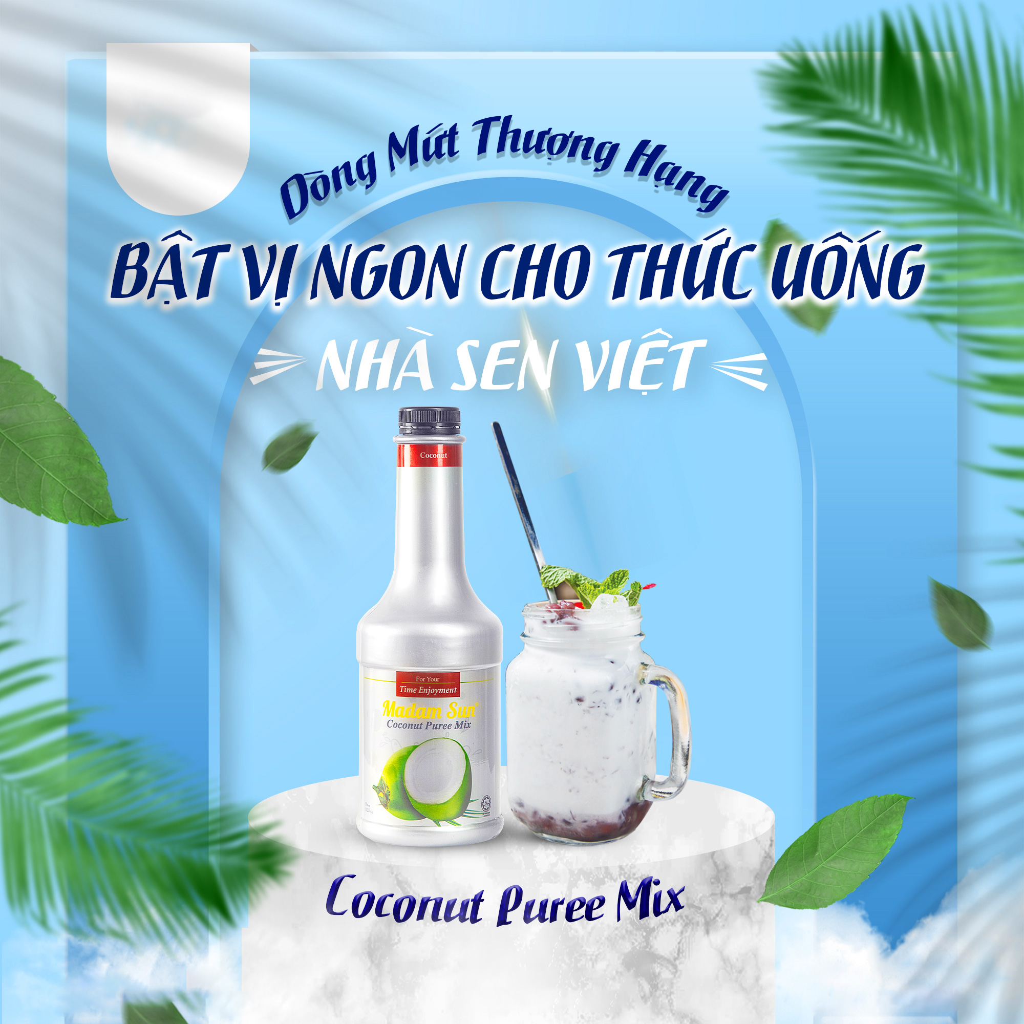 ✨Mứt trái cây pha chế Madamsun vị Dừa (Coconut Puree Mix) chai 1L - Hàng nhập khẩu Malaysia