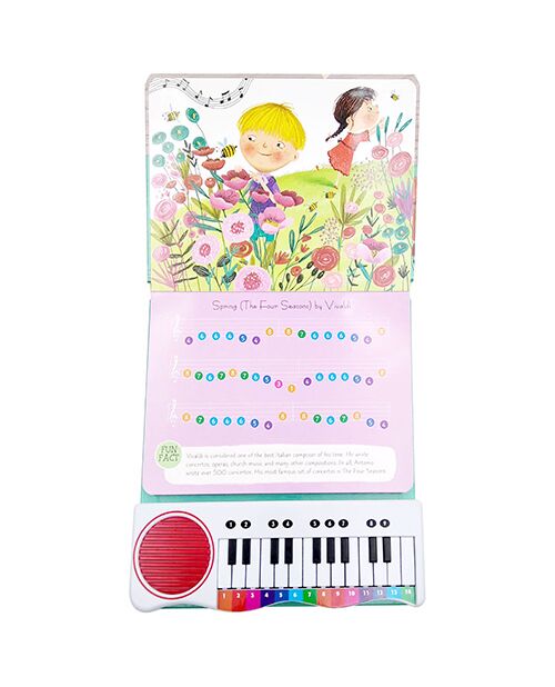 My First Piano Book: Cassical Melodies “My First Piano Book Cassical Melodies Keyboard Musical book” is an amazing collection of classical melodies by renowned personalities for little kids. The book comes with a mind blowing surprise, an easy-to-play keyboard that the kids are surely going to love. The songs in the book are written along with the notes for playing each word right above them denoted in different colors. The piano is a great thing for keeping your kids engaged and is really easy to play as they have to just match the keys with the colors and notes. For playing it, they need to push the keys on the piano that match with the color and number written on the notes for the respective words. The book consists of easy classical songs like “Bolero”, “For Elise”,”Swan Lake” and many more of those evergreen melodies. Let them sing along with these songs while they play with their very own piano. Afterall, some music can add spice to anything, then why not learning. Make learning fun for your kids with a beautiful sing along session.