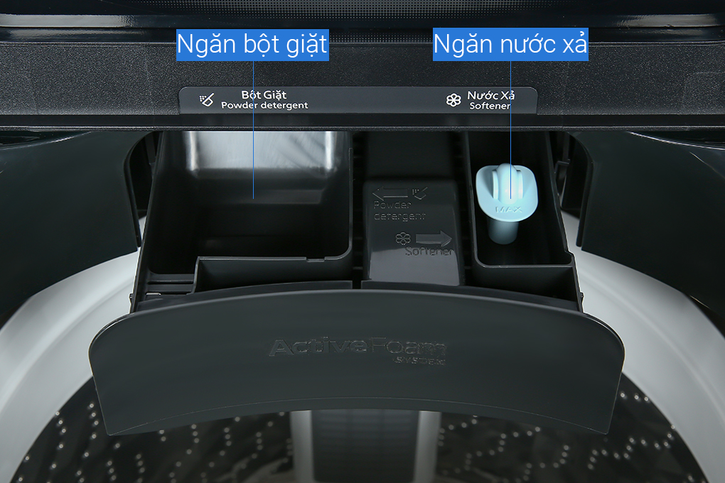 Đặc điểm nổi bật Tự động phân bổ nước giặt xả chính xác theo khối lượng đồ giúp tiết kiệm chất tẩy Ngăn chứa nước giặt xả lớn, chỉ cần đổ đầy 1 lần có