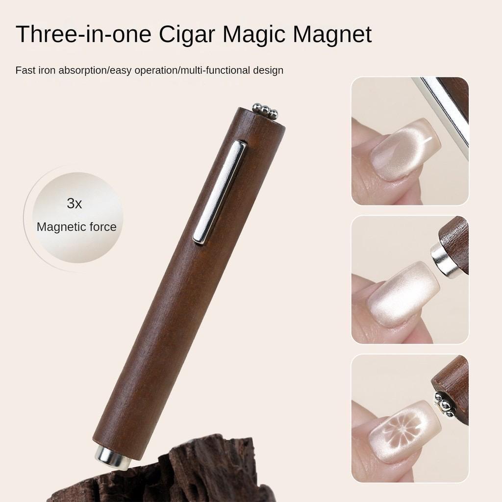 ✨Nam Châm Trụ 3in1 Cán Gỗ Vàng Đẩy Hút Sơn Mắt Mèo Siêu Sáng Làm Nail, Nam Châm cây Mắt Mèo Trụ Dày Siêu Từ Tính