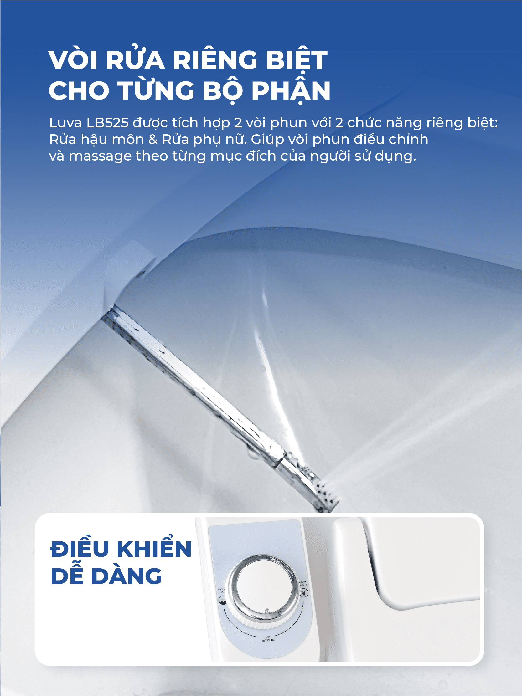 Nắp bồn cầu thông minh LUVA BIDET - LB204 (có nước nóng) - Thiết bị chuyên rửa hậu môn và vệ sinh cho Phụ nữ - Sử dụng hệ thống nước nóng và lạnh -