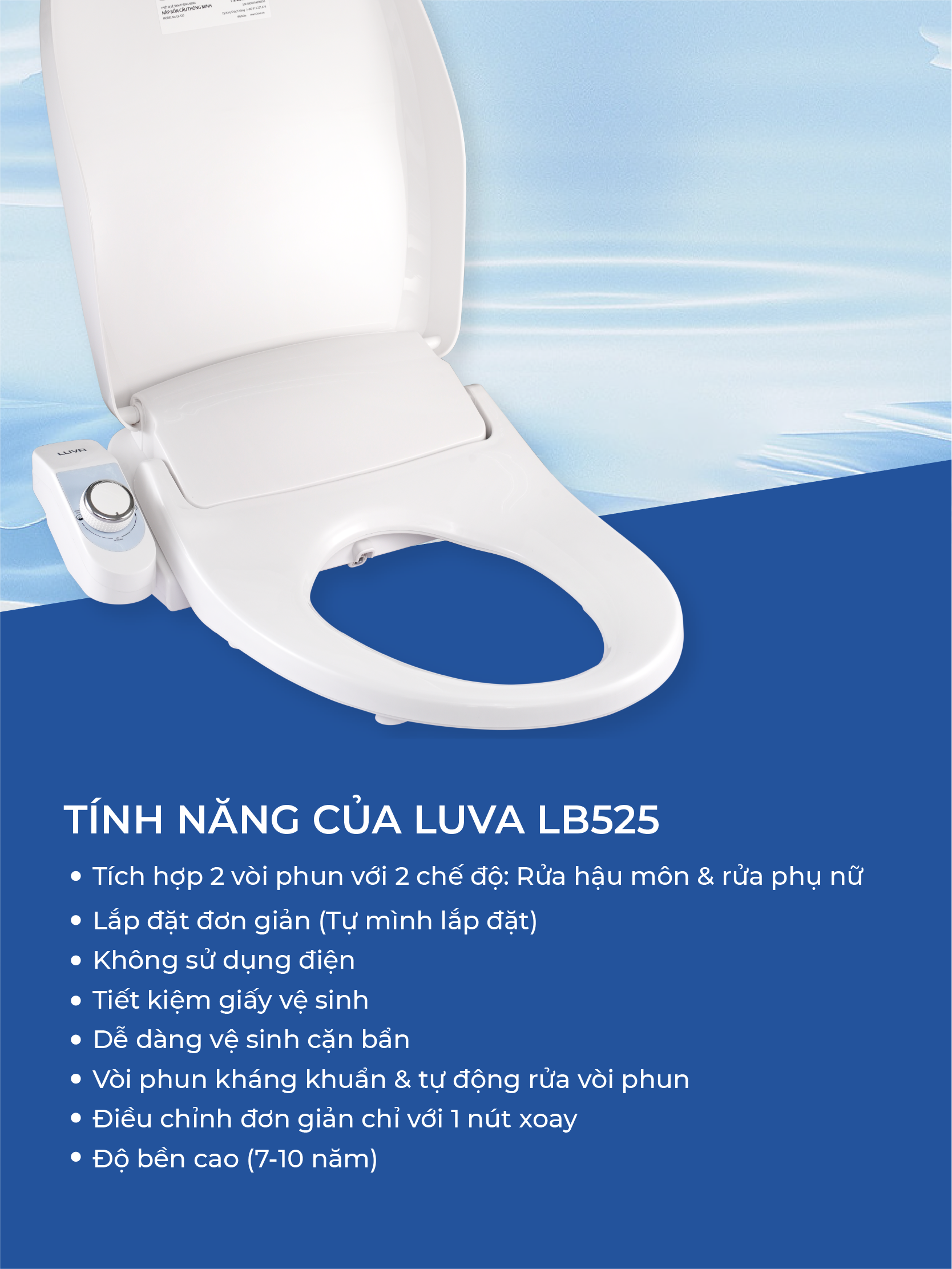 Nắp Bồn Cầu Thông Minh LUVA Bidet LB525 Xuất Hàn Quốc, Bảo Hành 3 năm, đổi lỗi 100 ngày, công nghệ hàn siêu âm LUVA cam kết nói KHÔNG với bất kỳ nguyên liệu,