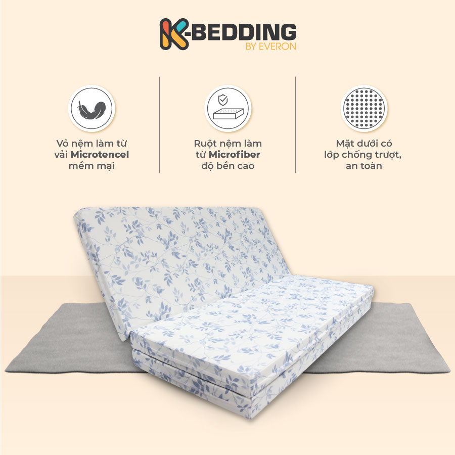Mua tại Tiktok1/ Nệm K-bedding By Everon là dòng sản phẩm mới của Everpia công ty sản xuất và sở hữu thương hiệu EVERON. - Vỏ nệm có chất liệu MicroTencel kết hợp 50% vải Microfiber và 50% vải Tencel mềm mại như tơ lụa và bền bỉ vượt trội so với nhiều loại vải có nguồn gốc tự nhiên.