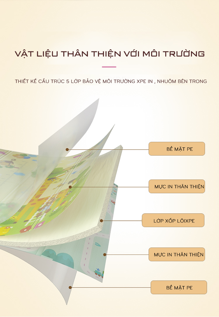 - Công dụng: Giữ nhiệt mang lại sự ấm áp mùa đông, mát mẻ mùa hè, chống trơn trượt, giảm tiếng ồn Ưu điểm của sản phẩm: Thảm silicon XPE cao cấp cho trẻ