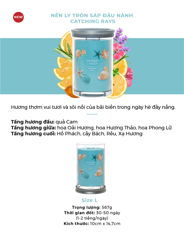 ✨Nến ly tròn sáp đậu nành Yankee Candle size L (567g) - Catching Rays