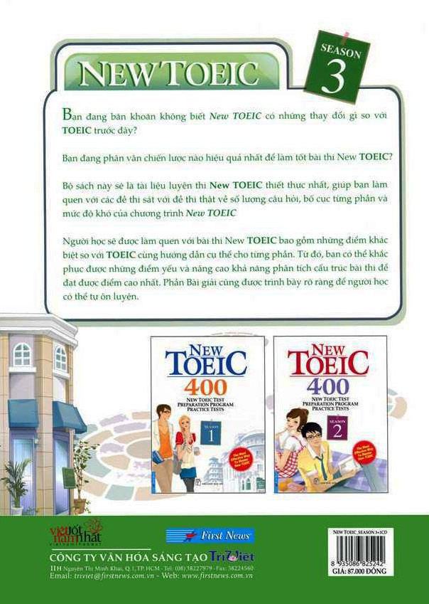Kỳ thi New Toeic với 2 phần thi mới là Nói và Viết sẽ khiến không ít thí sinh sẽ lúng túng nếu không có sự chuẩn bị kỹ lưỡng. New Toeic 400 - Season 3 sẽ giới thiệu cho độc giả những bài tập để luyện tập.