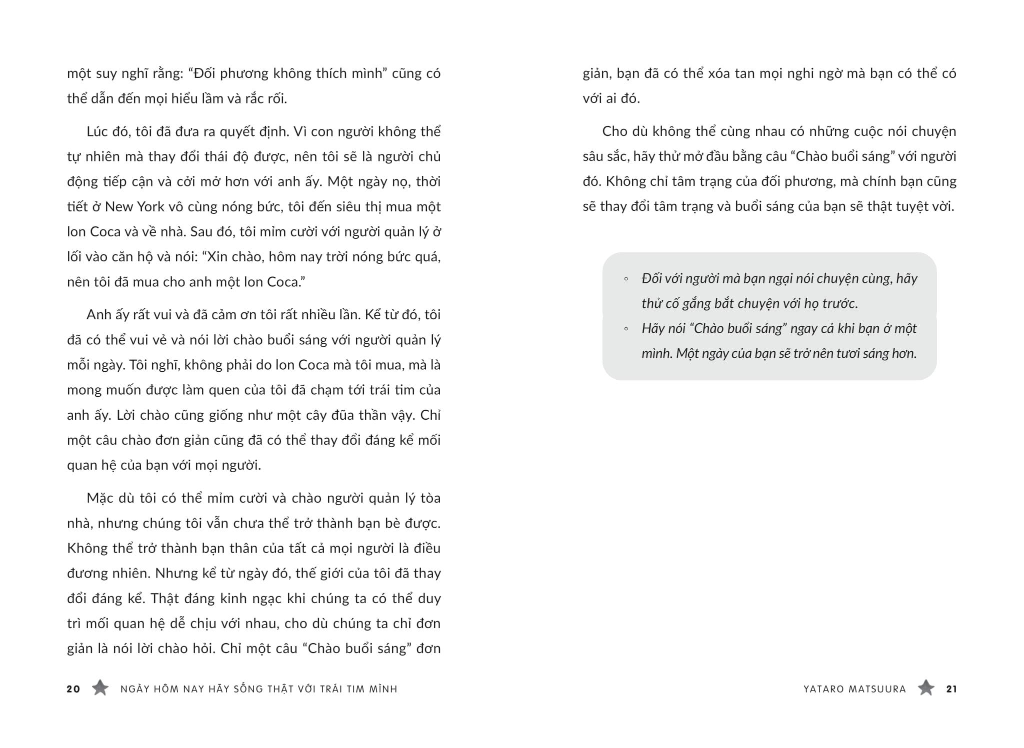 Cuốn sách không chỉ cung cấp những lời khuyên thực tế và hữu ích cho cuộc sống hàng ngày mà còn giúp bạn xây dựng những mối quan hệ hài hòa. Yataro Matsuura từng chia sẻ: "Nếu đó là một lời nói dối nhỏ, hãy bỏ qua nó mà không thắc mắc." Lời khuyên này thật sự hữu ích, đặc biệt khi chúng ta cảm thấy quá quan tâm đến những điều nhỏ nhặt và có thể khiến mối quan hệ trở nên căng thẳng.